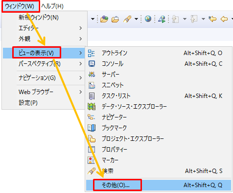 「ウィンドウ」>「ビューの表示」>「その他」をクリックします。