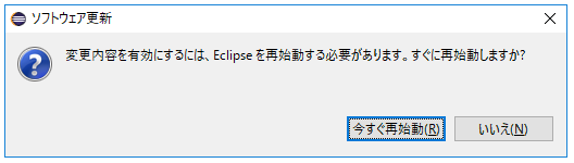 「今すぐ再始動」をクリックするとEclipseが再起動します。