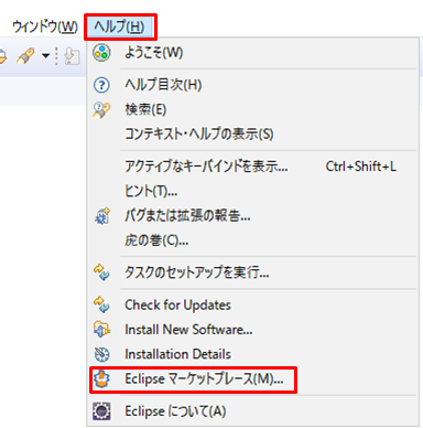 「ヘルプ」>「Eclipse マーケットプレース」をクリックします。