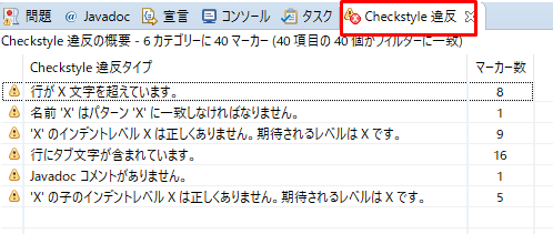 3.以下は、「Checkstyle 違反」の表示です。