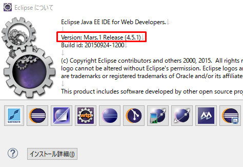 2.Versionの箇所に、Eclipseのバージョンが記されています。