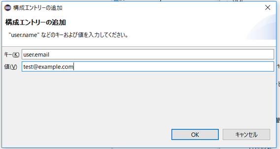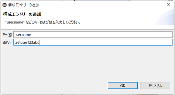 ユーザ名は、キーに「user.name」を値は任意の文字列を入力します。