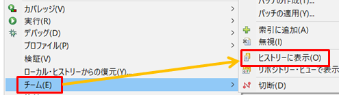 1.プロジェクトを右クリックして「チーム」→「ヒストリーに表示」をクリックします。