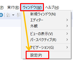 「ウィンドウ」→「設定」をクリックします。