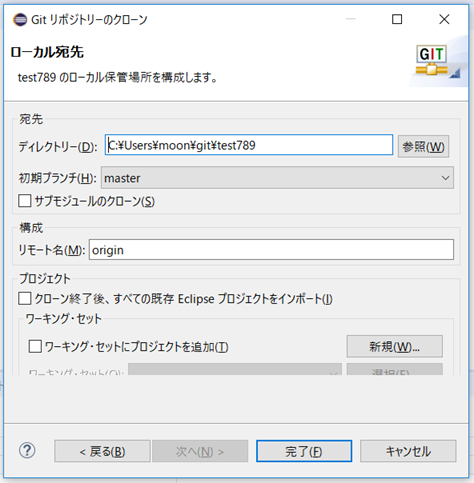 4.EclipseでGitHubからクローンで取得する