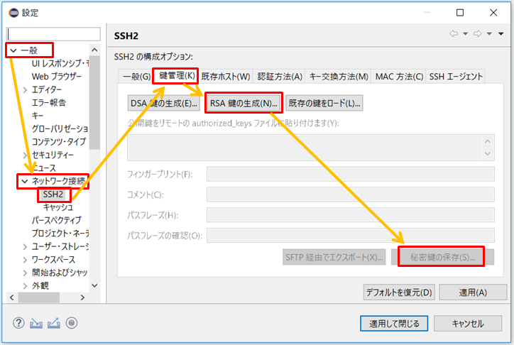 1.Eclipseでssh接続の鍵を作成する