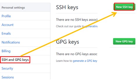 2.SSH and GPG kesyからNew SSH keyをクリックします。