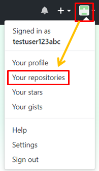 1.GitHubのページの右上のアイコンをクリックしてYour repositoriesをクリックします。