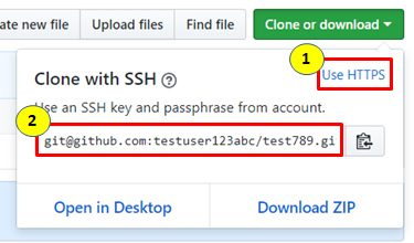 2.Clone or downloadをクリックしてSSH接続用のURLをコピーします。