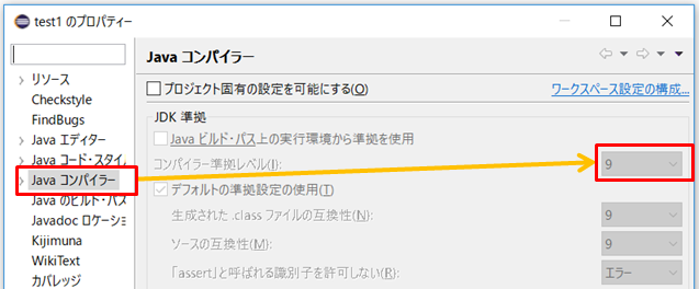 ECJのJDK準拠レベルの設定方法です。