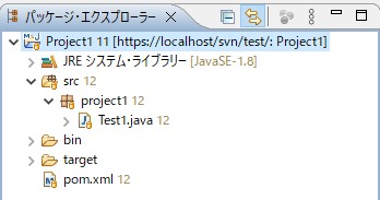 以下のプロジェクトを空のSVNに初回コミットします。