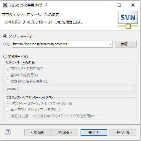 6.SVN登録時は、以下のようにプロジェクトの横にURLが表示されます。