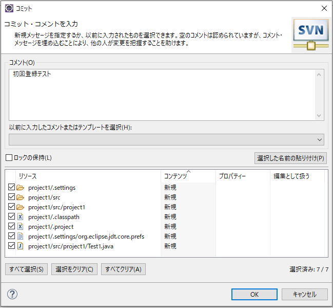 EclipseのSVNに初回コミットを行う
