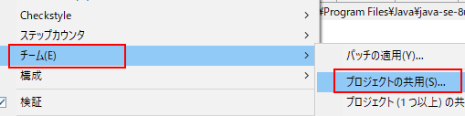 1.プロジェクトを右クリックし、チーム>プロジェクトの共用をクリックします。
