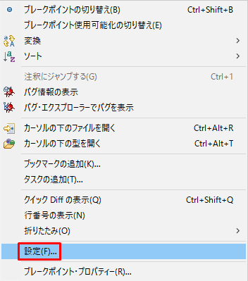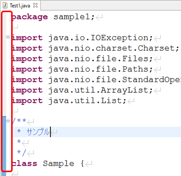 1.エディターの左側を右クリックします。(下図の赤枠の部分)
