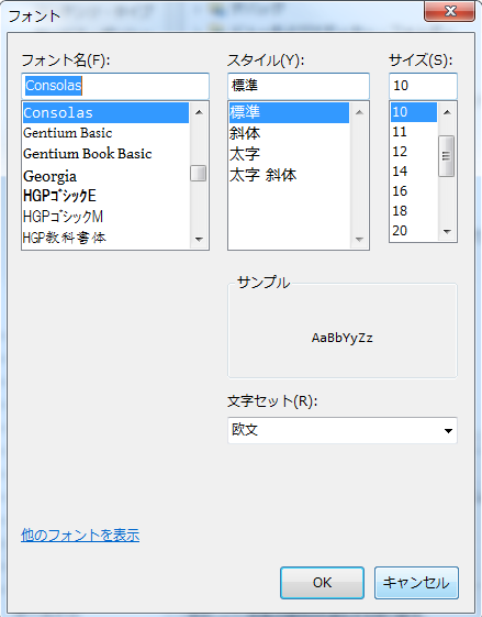 ※フォント名のConsolasについて文字の一部が文字化けする参照