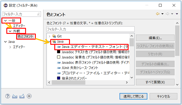 またはJavaファイルであれば、「Javaエディター・テキスト・フォント」を選択します。
