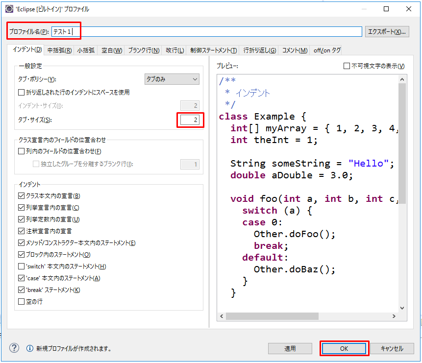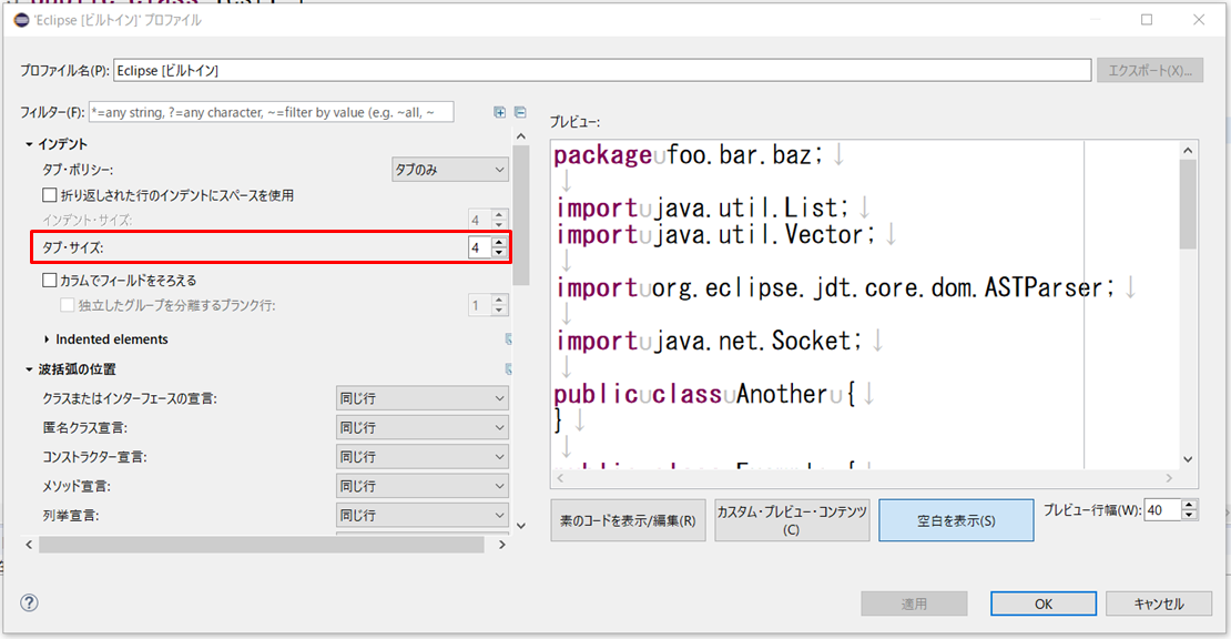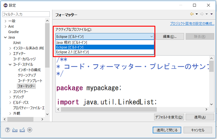 3.プロファイル名がEclipse[ビルトイン]の内容です。