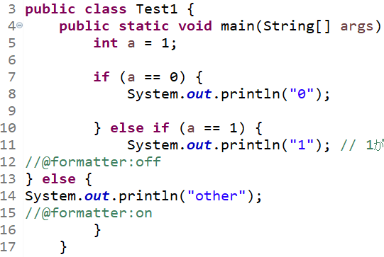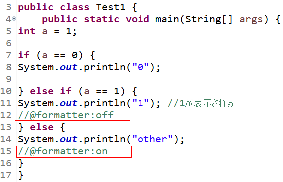 | 一部の箇所は整形を反映させない@formatter | |