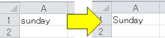 以下のようにsundayと入力すると先頭が大文字になってしまいます。