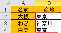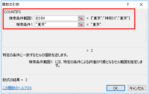 | =COUNTIFS(B2:B4,"東京") |