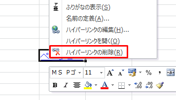 リンクを削除する場合は、リンクがあるセルを右クリックし、「ハイパーリンクの削除」をクリックします。