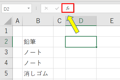 1.一意の値を表示するセルを選択してから関数のアイコンをクリックします。