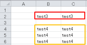 Range("b4", "c6").Value = "test4"