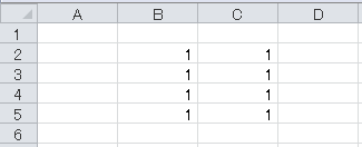 B2からC5まで1がセットされます。