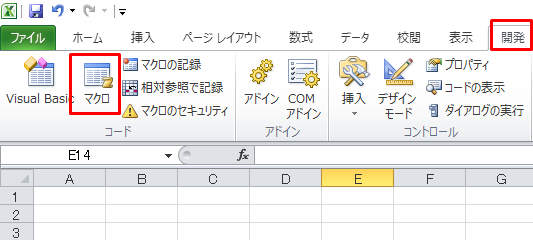 例として、マクロ実行でダイアログにhello worldという文字を表示します。