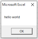 6.マクロが実行され、メッセージボックスにhello worldが表示されます。
