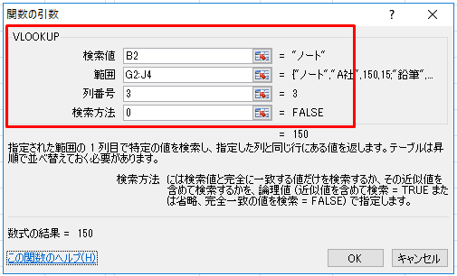 上記のVLOOKUP関数に値を入力していきます。