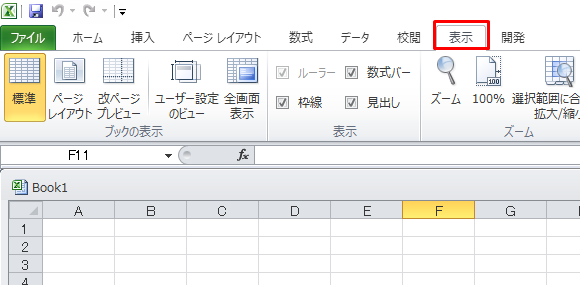 1.表示タブをクリックします。