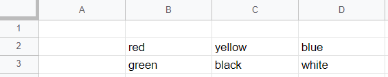 sheet1.getRange(2,2).setValue("yellow");
