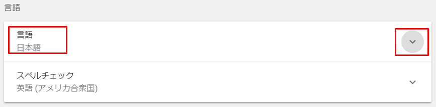 3.さらに下にスクロールして、「言語」の横にある印をクリックします。