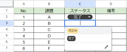 Googleシートのプルダウン(ドロップダウンリスト)を作成するサンプルです。