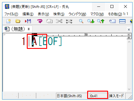 Shift-JISのAの文字コードは、「0x41」であることがわかります。
