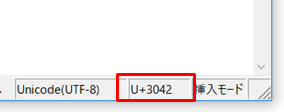 1.文字の左にカーソルを当てると右下のステータスバーに現在表示で使用している文字コードが表示されます。