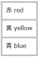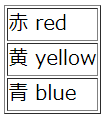 <tr><td>赤 red</td></tr>