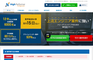 High-Performerは、フリーランスエンジニアのための案件紹介サービスです。