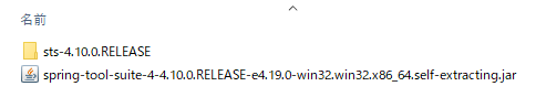 ファイル名:spring-tool-suite-4-4.10.0.RELEASE-e4.19.0-win32.win32.x86_64.self-extracting.jar