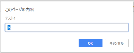 - 戻り値は、入力した文字を返します。キャンセル押下時はnullが返ります。