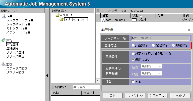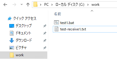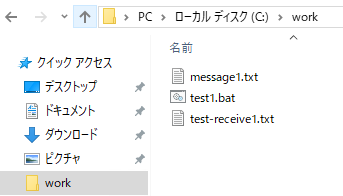 2.C:\workにtest-receive1.txtファイルが新規作成されるとJP1でbatファイルを実行します。