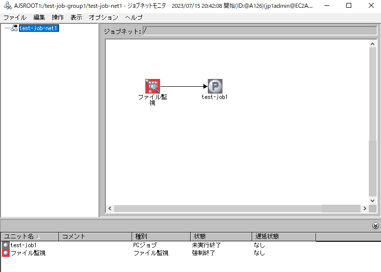 5.強制終了したジョブの後ろのジョブは未実行終了となります。