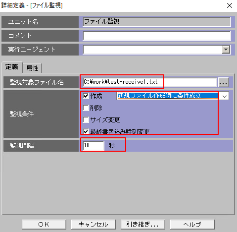 2.「監視対象ファイル名」はパスとファイル名を指定します。