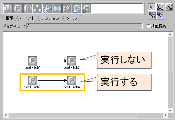 JP1のジョブネット内の一部のジョブを手動で実行するサンプルです。