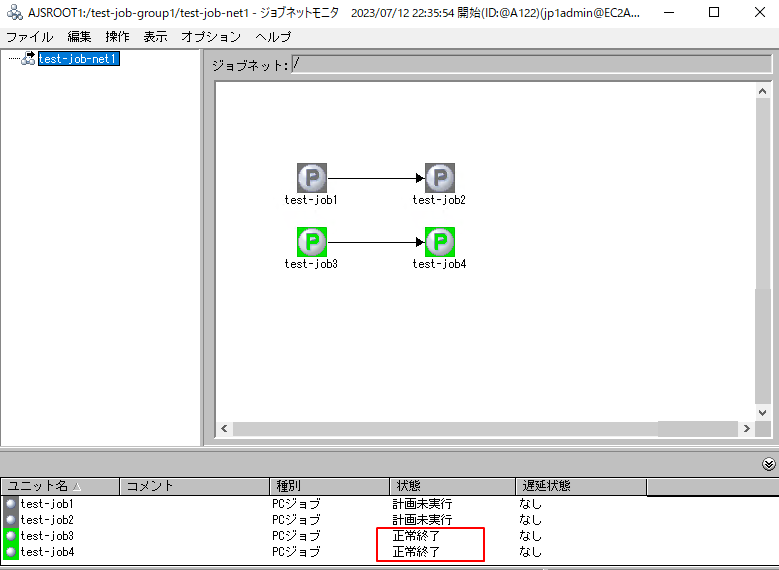 4.結果を確認すると実行中止にしていないジョブのみ実行されています。