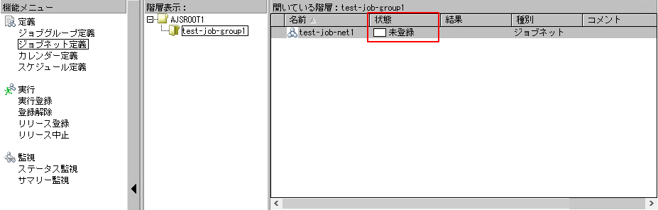 1.最初はジョブネットが未登録の状態です。