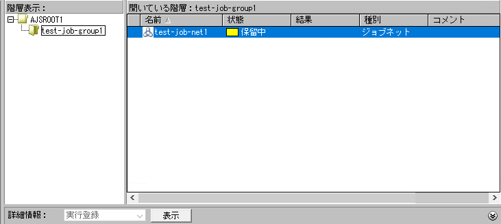 3.処理が正常終了したら中央の「表示」ボタンを押して下の枠のジョブネットをWクリックします。