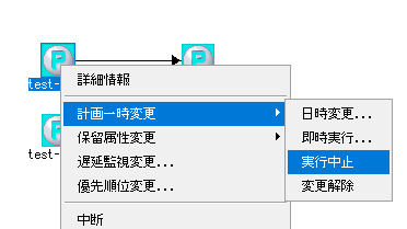 3.ジョブを右クリックして「計画一時変更」>「実行中止」をクリックします。